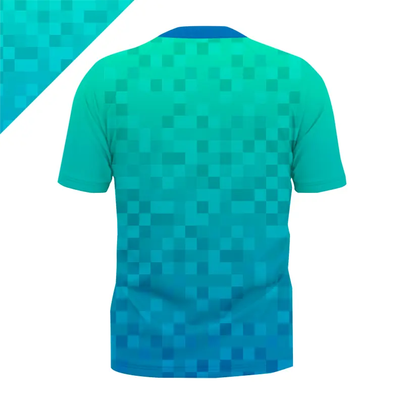 Hadir dengan desain Pixelated Gradient yang modern, jersey ini dirancang khusus untuk Anda yang aktif. Perpaduan warna hijau toska (teal) dengan gradasi biru tua memberikan kesan energik dan profesional.